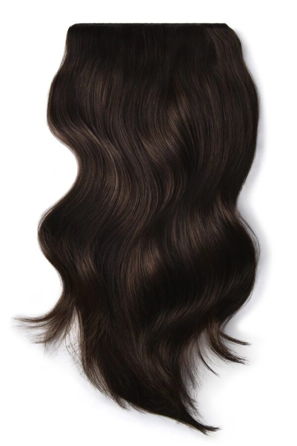 Clip on 100% remy extension di capelli a 8 fasce – densità tripla, lisci, marrone più scuro #2