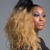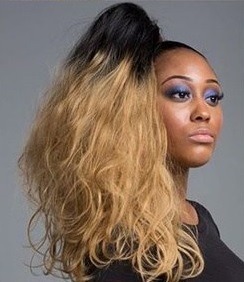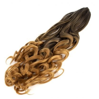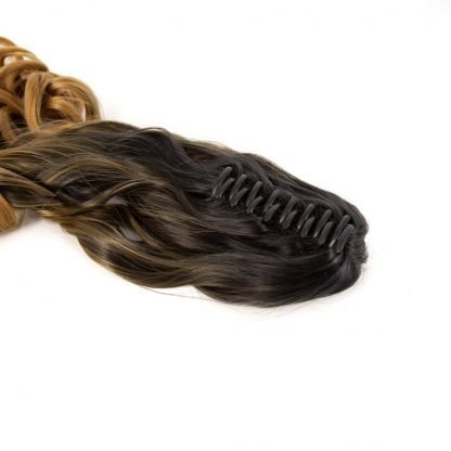 Coda sintetica su pinza – riccia, ombre nero-biondo scuro S3, 45 cm