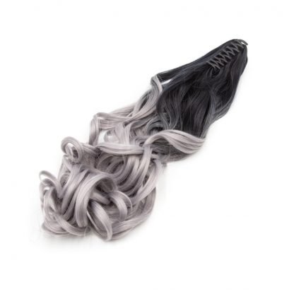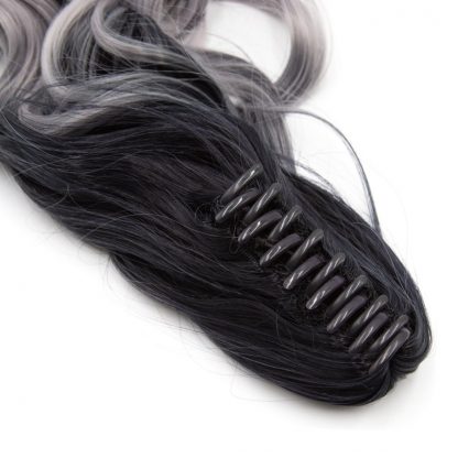Coda sintetica su pinza – riccia, ombre nero-grigio S1, 45 cm