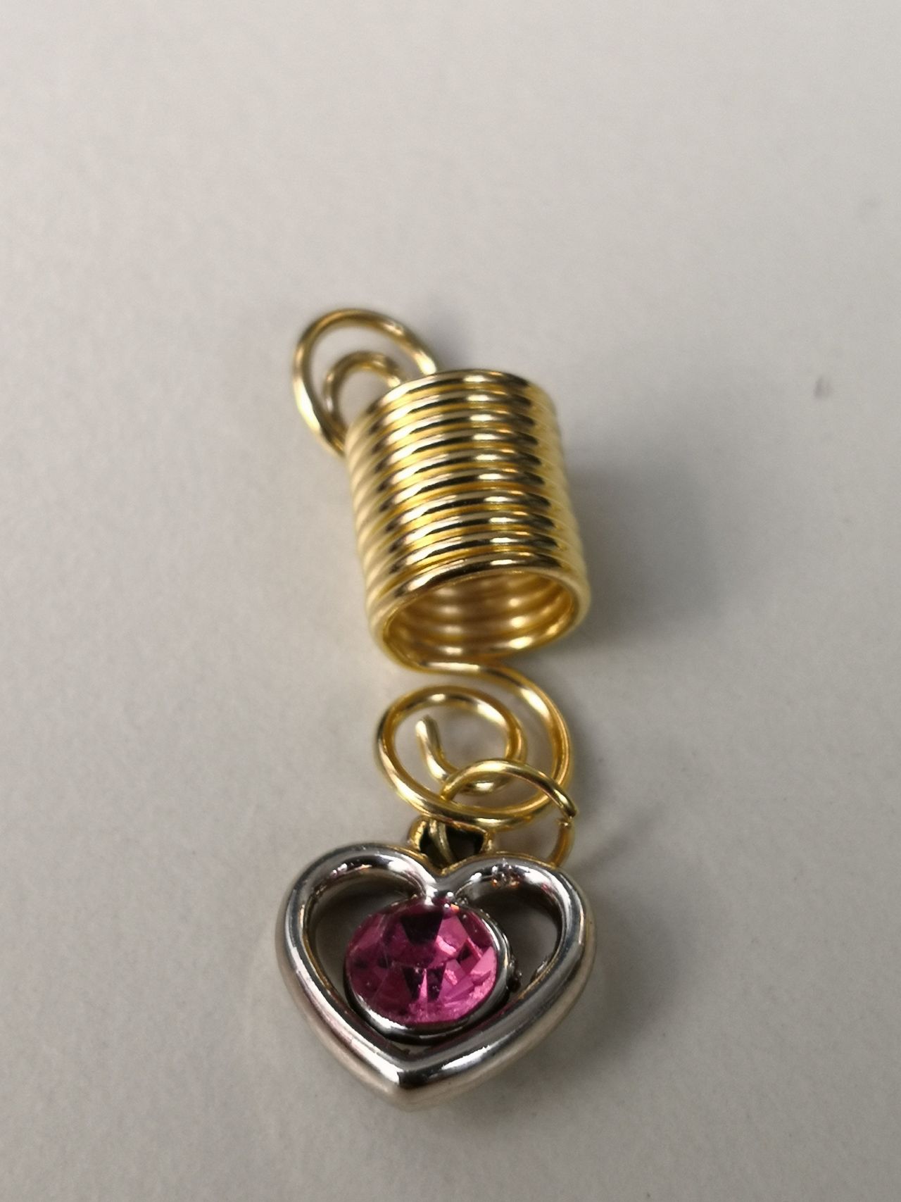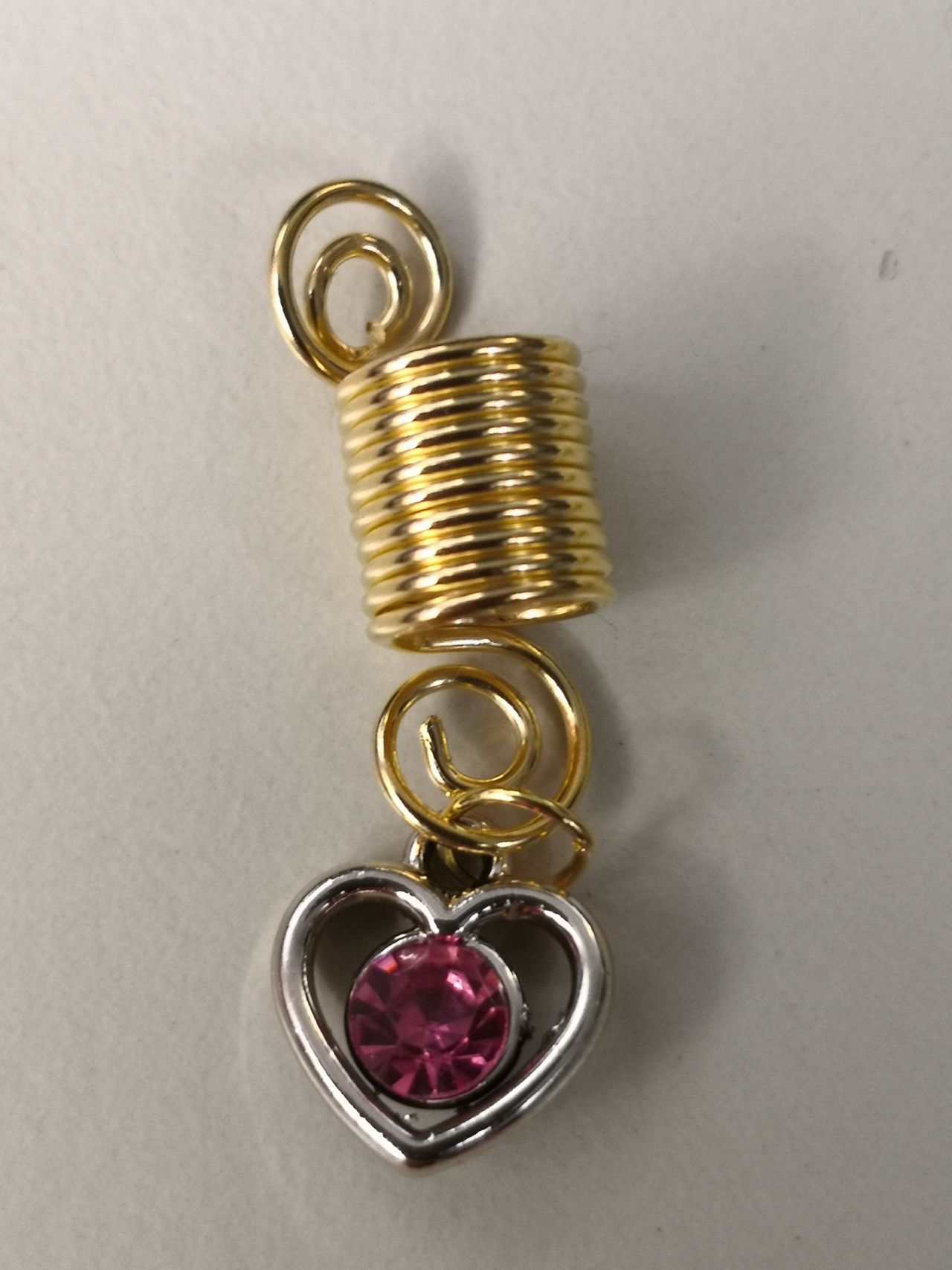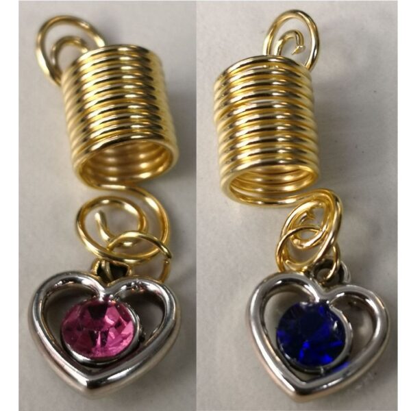 Davanti a te ci sono gioielli in cui risplendi … il  twister color oro con un ciondolo a cuore all’interno un cristallo rosa o blu. I gioielli sono in metallo. Il twister ti consente di regolare la dimensione della treccina puoi allungarlo in volume o ridurlo in base alla forma originale). I gioielli sono molto leggeri, quindi non appesantiscono la testa.