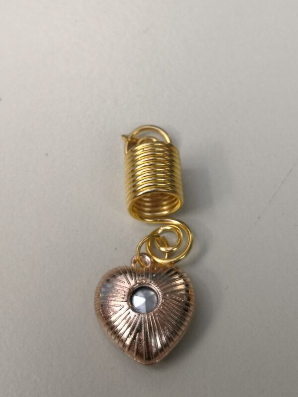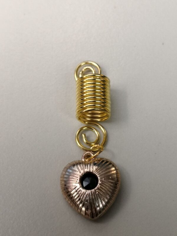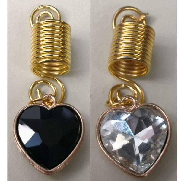 Davanti a te c’è un gioiello con cui puoi risplendere… il twister in color oro con un ciondolo di cristallo a cuore in colore nero e bianco. Il gioiello è in metallo. Il twister consente di adattarsi alla dimensione della treccina (puoi allungarlo in volume o ridurlo in base alla forma originale). Il gioiello è molto leggero, quindi non rappresenta un ulteriore peso sulla testa.