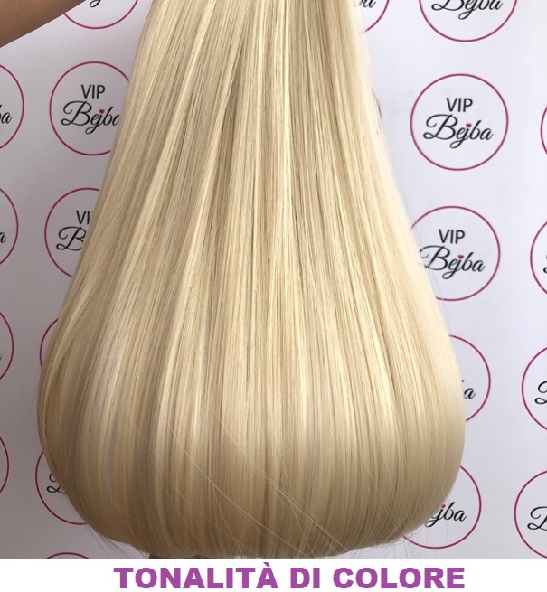 • trattamento termico: stiratura fino a 180°C (non danneggia i capelli a lungo termine), arricciatura fino a max. 230°C (sconsigliamo di arricciarli, perché i ricci non dureranno a lungo, distruggerai le extension di capelli più velocemente e quindi ridurrai la loro durata e qualità)