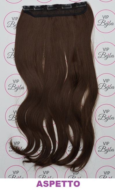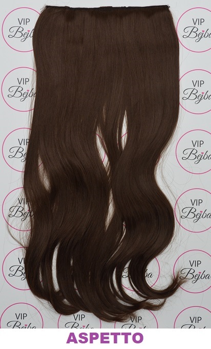 Sintetici clip-on extension di capelli a 1 fascia – leggermente mossi, marrone cioccolato F3/M4, 55 cm
