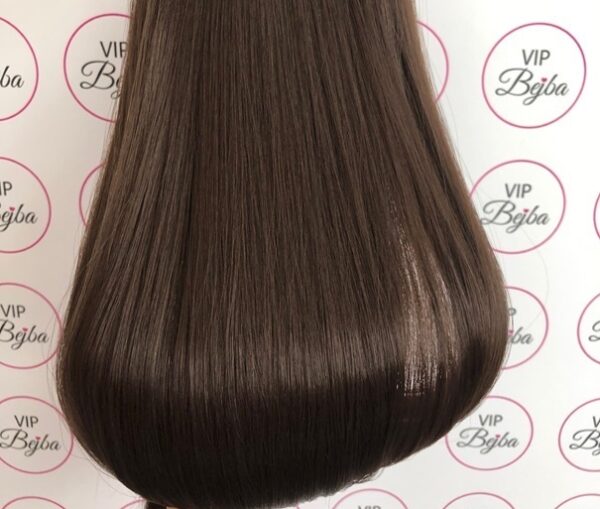 • trattamento termico: stiratura fino a 180°C (non danneggia i capelli a lungo termine), arricciatura fino a max. 230°C (sconsigliamo di arricciarli, perché i ricci non dureranno a lungo, distruggerai le extension di capelli più velocemente e quindi ridurrai la loro durata e qualità)