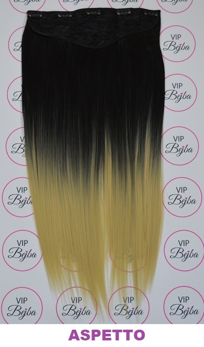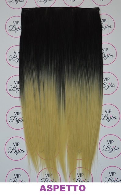 Sintetici clip-on extension di capelli a 1 fascia – lisci, ombre nero-biondo platino S11, 60 cm