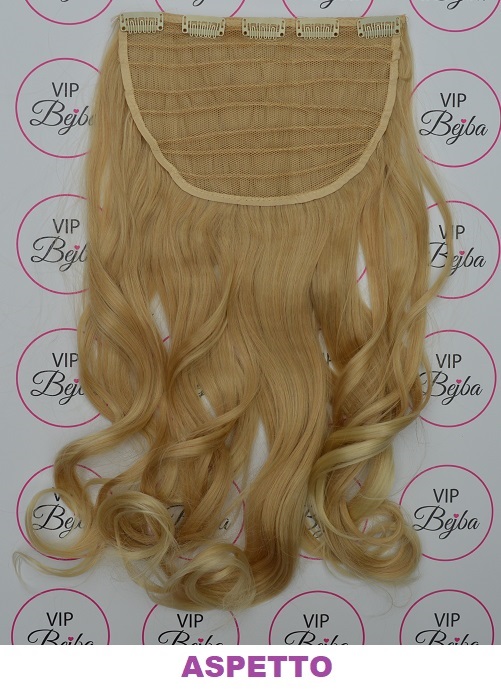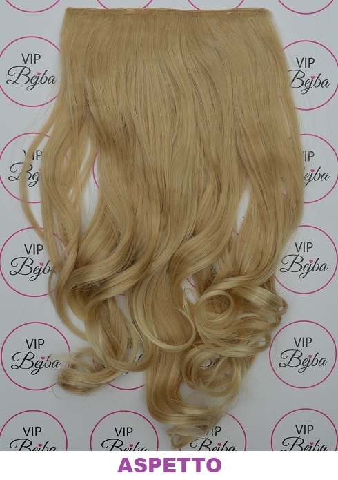 Sintetici clip-on extension di capelli a 1 fascia – ricci, oro meches bionde F12, 45 cm