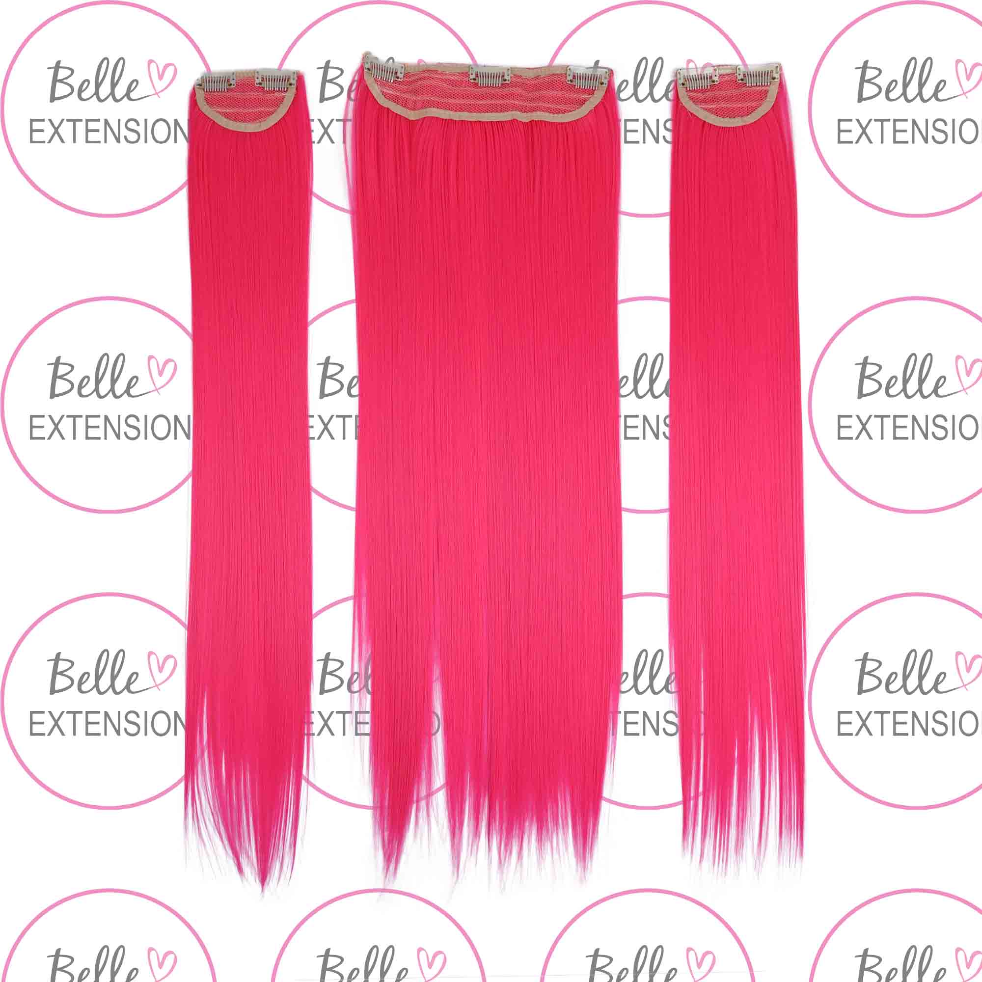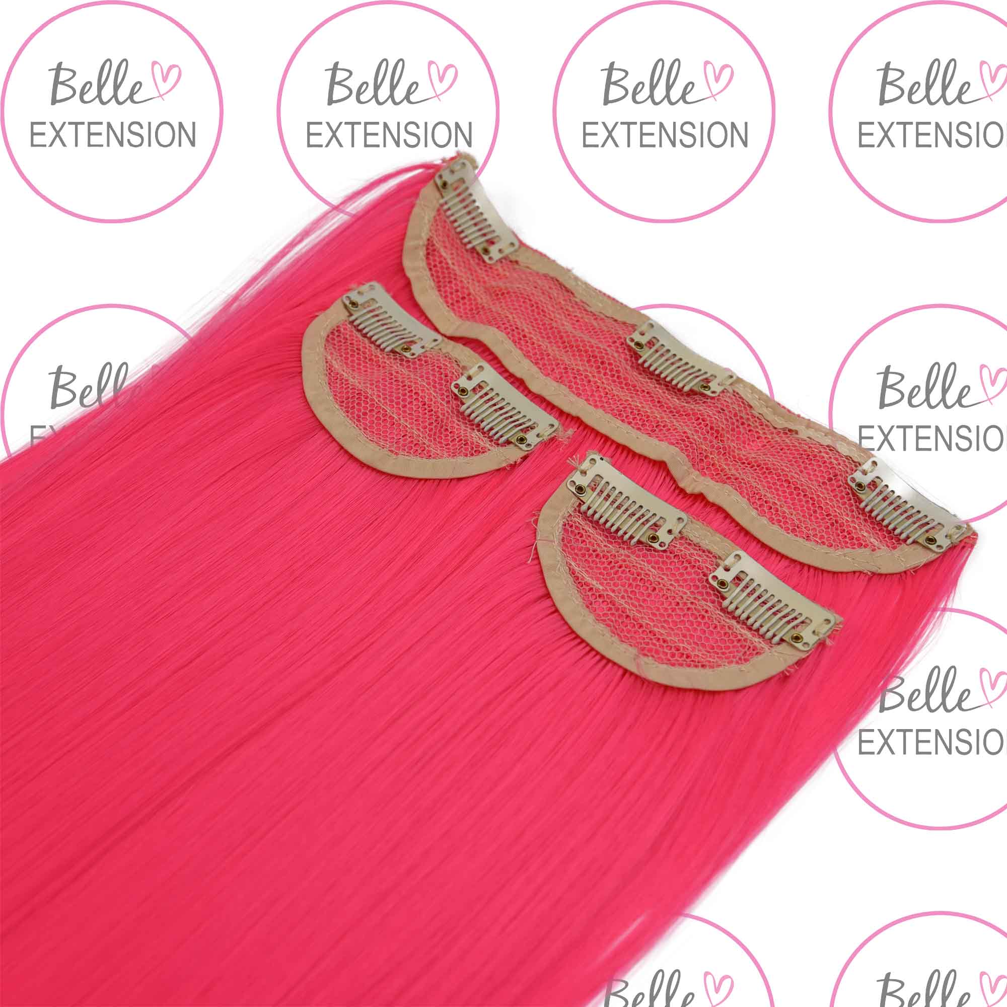 Sintetici clip-on extension di capelli a 3 fasce – lisci, rosa intenso C8, 60 cm
