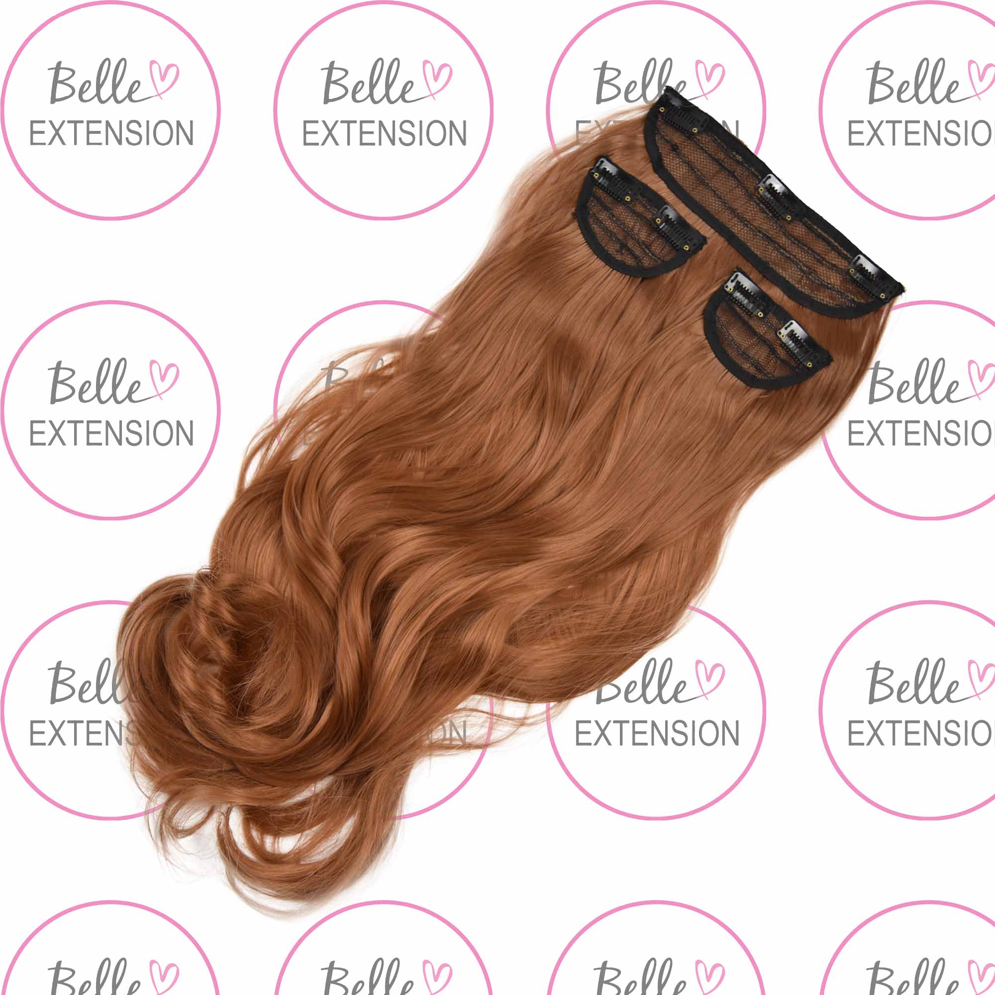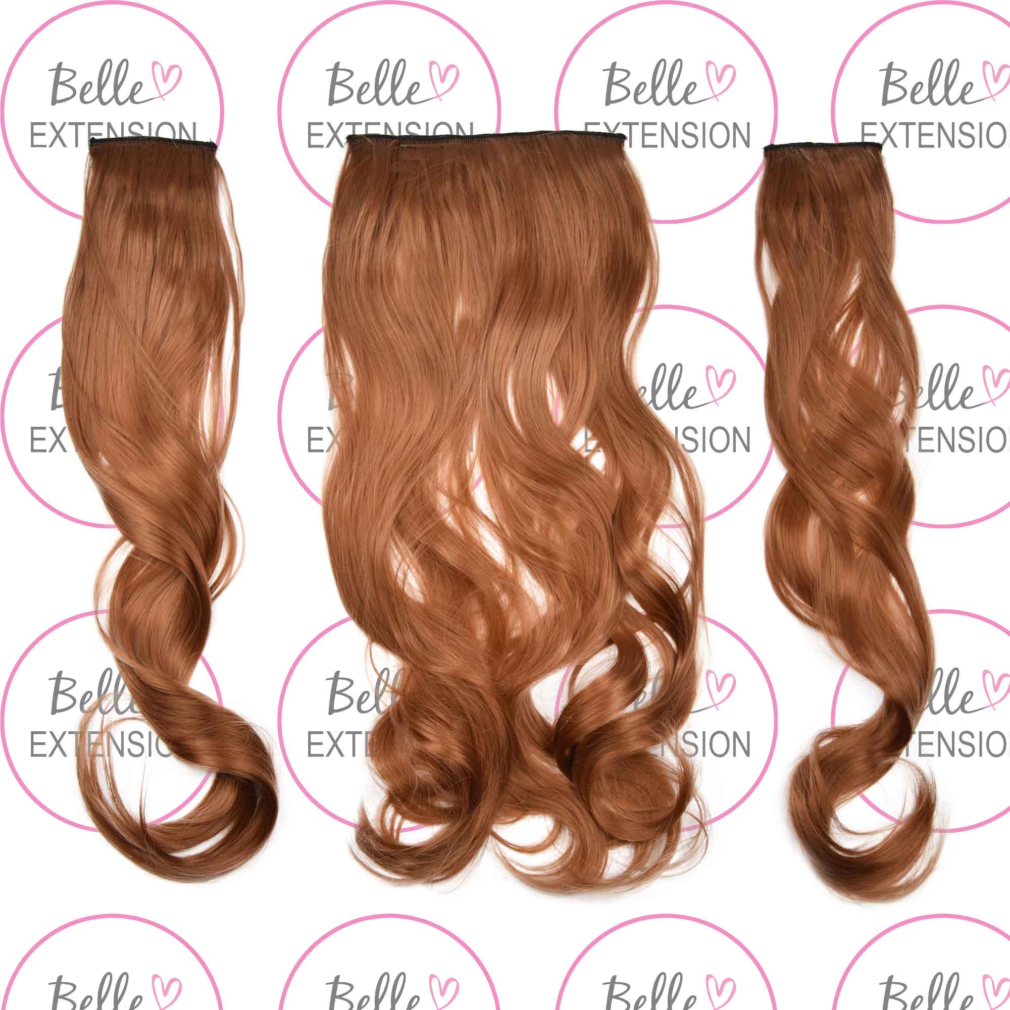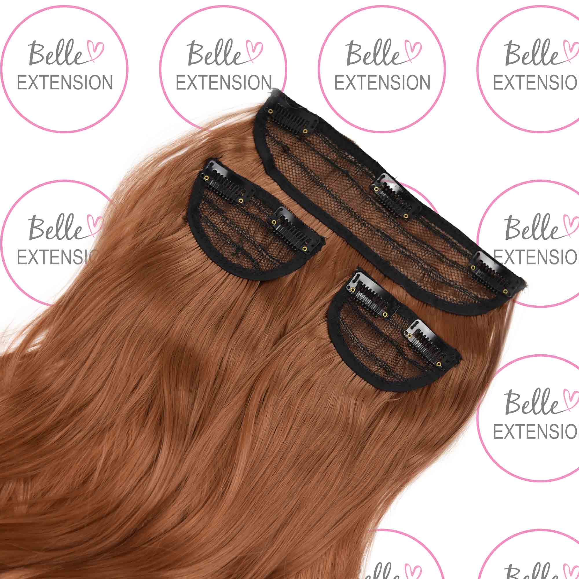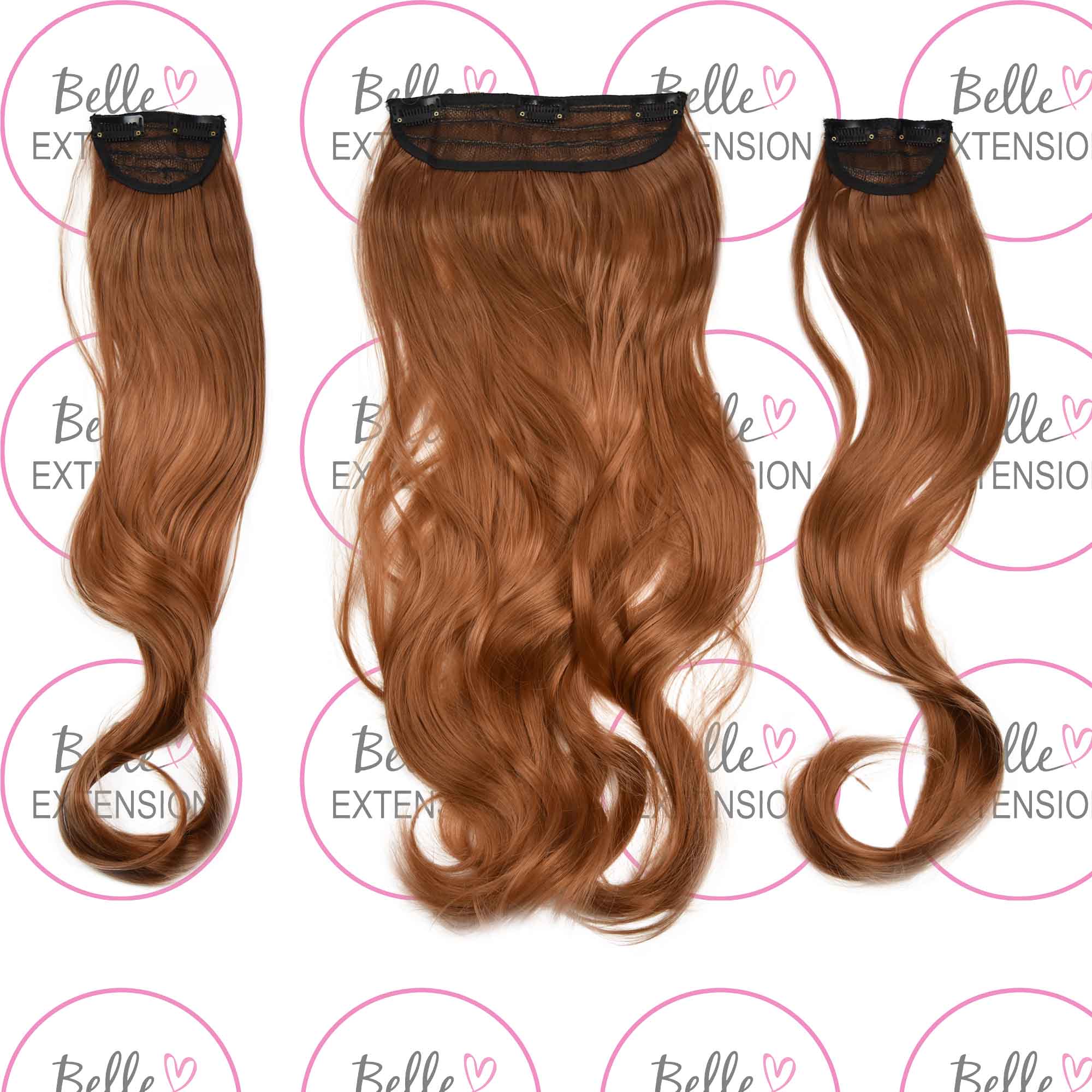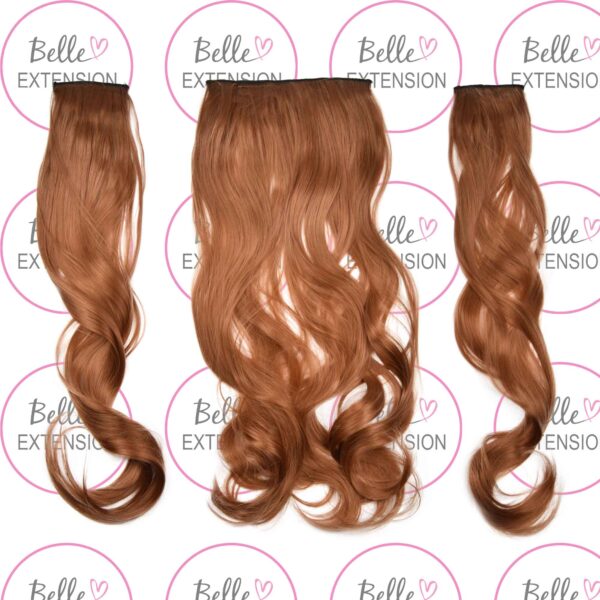 Sintetici clip-on extension di capelli a 3 fasce – ricci, arancione marrone S2, 50cm