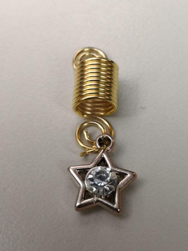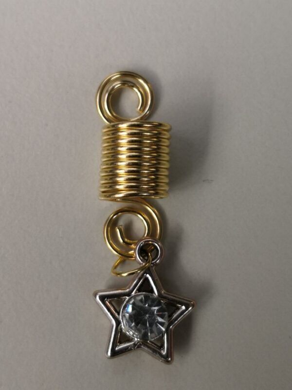 Davanti a te c’è un gioiellio in cui risplendi … il twister in color oro con un ciondolo a stella con molti piccoli cristalli bianchi. Il gioiellio è in metallo. Il twister ti consente di regolare la dimensione della treccina (puoi allungarlo in volume o ridurlo in base alla forma originale). I gioielli sono molto leggeri, quindi non appesantiscono la testa.