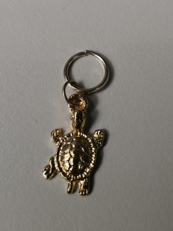Davanti a te il gioiellio a forma di tartarughina color oro. Il gioiellio è in metallo. L’anello ti consente di regolare la dimensione della treccina (puoi allungarlo in volume o ridurlo in base alla forma originale). Il gioiellio è molto leggero, quindi non appesantisce la testa.